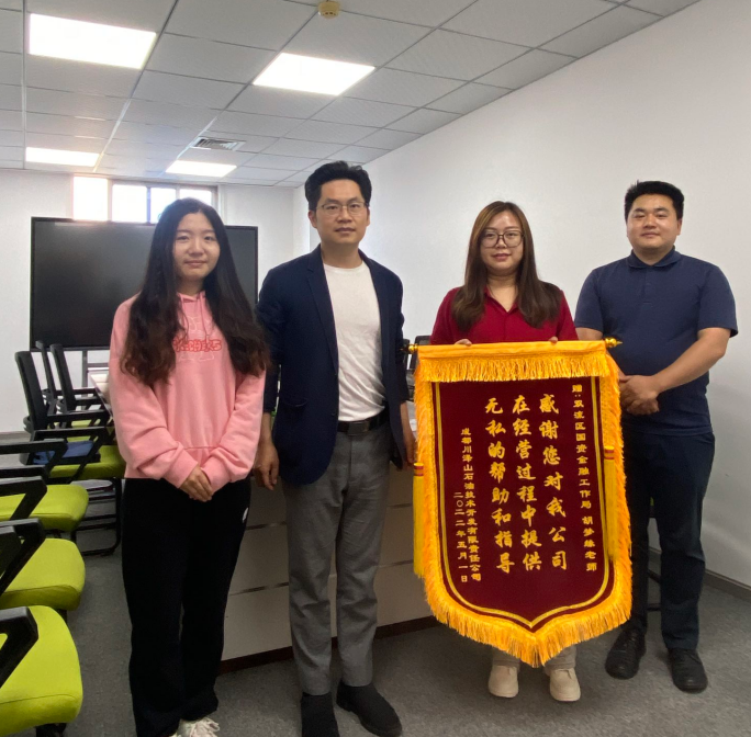 “非常感谢你们对我们公司提供的帮助,才让我们顺利渡过了难关......”5月19日,成都川泽山石油技术开发有限责任公司负责人唐汉来到双流区国资金融局,为该局工作人员胡梦缘送来锦旗和感谢信。